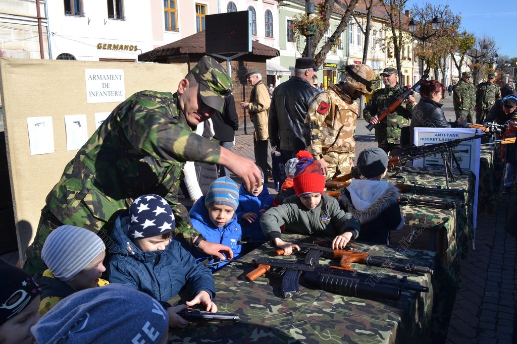 Pe pietonalul Liviu Rebreanu a fost organizată o expoziţie de tehnică, echipamente militare şi armament.