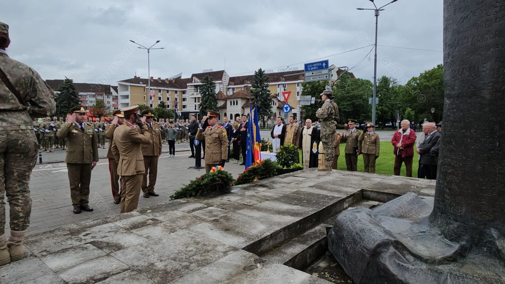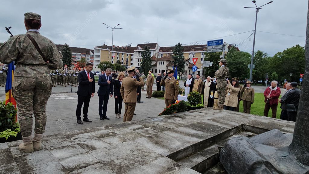 Ceremonialul la care au luat parte oficialități locale a cuprins următoarele momente: acordarea onorului militar, intonarea Imnului Național al României, oficierea serviciului religios, alocuțiuni, depunerea unei coroane de flori la Monumentul Eroilor, defilarea efectivelor militare.