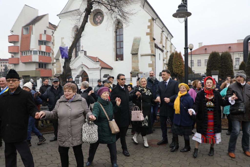 În Piața Unirii din Bistrița a avut loc o ceremonie militară și religioasă dedicată sărbătoririi a 166 de ani de la Unirea Principatelor Române. Cei prezenți s-au prins, conform tradiției, în Hora Unirii.
